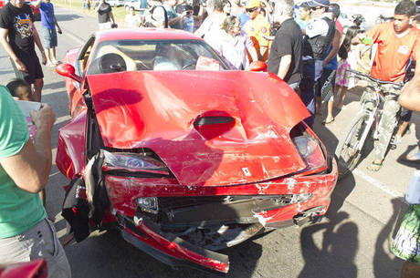 Segundo testemunhas, o motorista da Ferrari estava participando de um racha com outros carros importados próximo ao posto Itiquira, quando atingiu um Gol. Três pessoas ficaram feridas, entre elas uma criança.