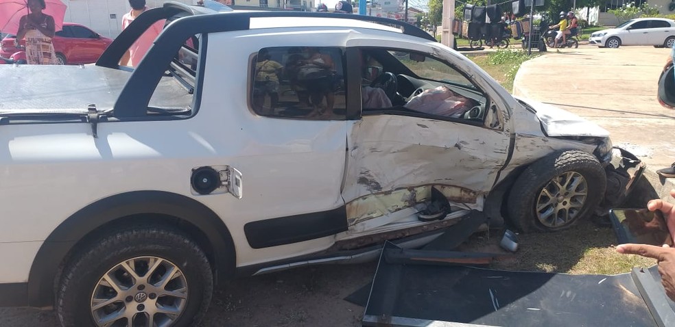 Caminhonete envolvida em acidente na manhã deste domingo, — Foto: Reprodução/Redes sociais