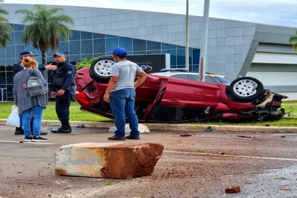Renato Alves/ O TempoUm carro capotou no Eixo Monumental, na manhã desta terça-feira (14/12), após o motorista se envolver em um acidente com outro veículo, na altura do Centro de Convenções Ulysses Guimarães.