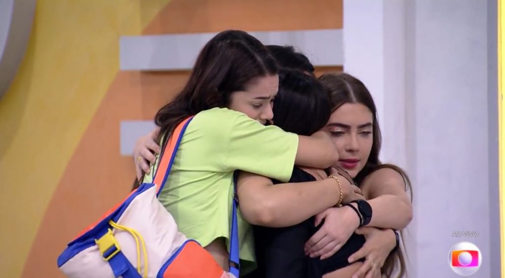 Antes de deixar a casa de vez, Larissa ganhou um abraço triplo de Jade, Eslô e Laís e declarou torcida para as sisters.