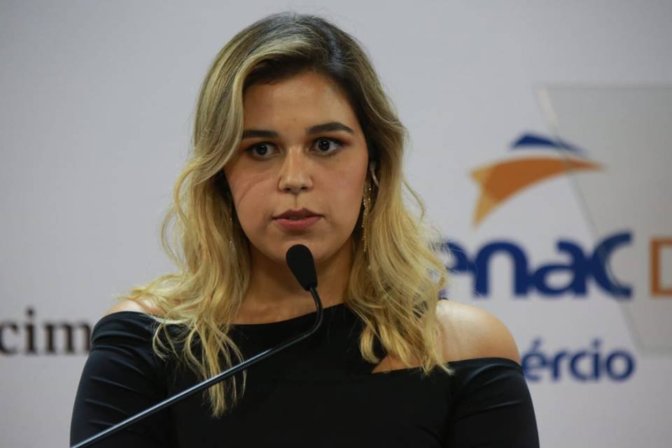 Isadora Teixeira mediou o debate entre os candidatos ao GDF, junto com Larissa Alvarenga