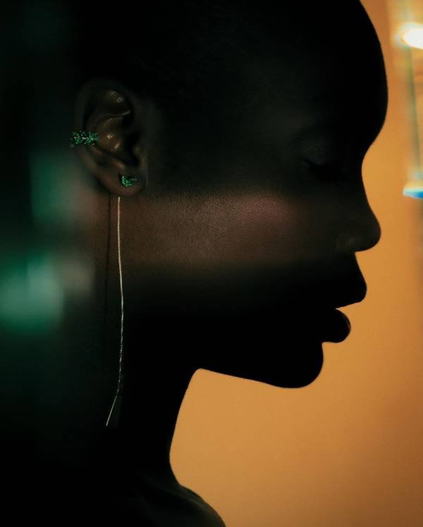 Tais características são transportadas para a pulseira arco-íris, o brinco saturno, e a dupla brinco e piercing d’água, e também no pingente batizado como Disco Voador. “Não é só uma collab: é um salto num escuro brilhante, bonito, lúdico, misterioso e abençoado. É fazer do meu traço uma peça e, das peças, um sentido. É trazer entidades simbólicas para ter lugar no peito, na orelha, no dedo e no pulso”, definiu Carolina Dieckmann nas redes sociais.