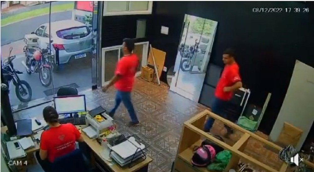 Nas imagens, é possível ver uma mulher saindo do veículo logo após estacioná-lo. O homem, que estava em um comércio, vê o carro descendo pelo reflexo de um espelho que estava em sua frente. A mulher havia esquecido de puxar o freio de mão. O homem então sai correndo para tentar fazer o automóvel parar.