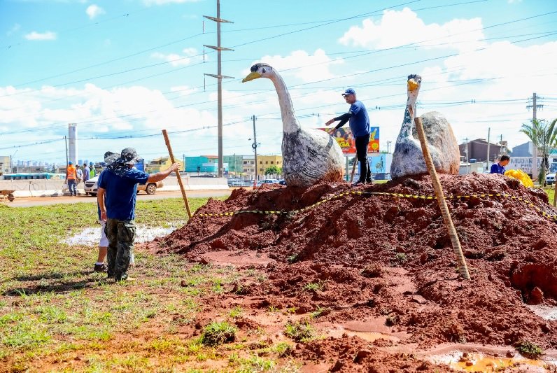 Esculturas foram instaladas no balão do novo viaduto da região administrativa e passarão por manutenção e pintura completa